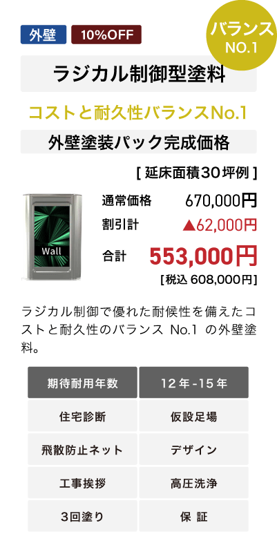 ■外壁塗装+屋根塗装で外壁塗装パック10%Off+屋根塗装10%Off。